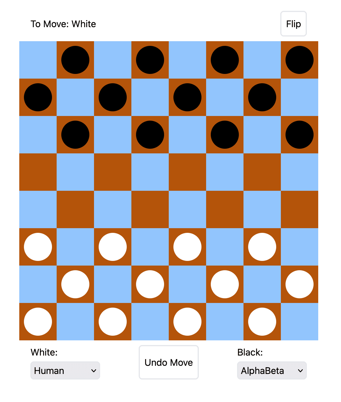 12/12/2024American checkers and a simple alpha-beta search AI. This was a 3 hour coding challenge and probably won't receive any updates :)